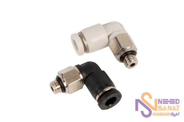 همانطور که از نام این نوع از اتصال مشخص است دارای یک زاویه 90 درجه میباشند و برای مواردی که در نصب نیاز به زاویه داریم استفاده میشوند. نوع طراحی این نوع از اتصالات پنوماتیک به صورتی است که فضای کمی را اشغال میکنند و در فضاهای باریک به سادگی نصب میشوند.